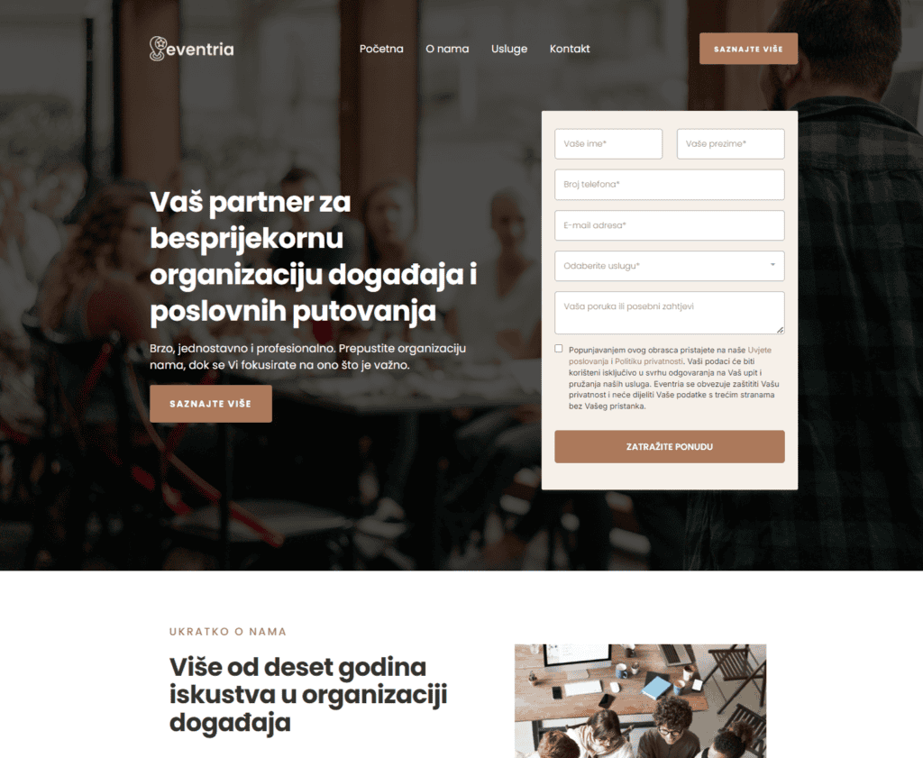 S više od 10 godina iskustva, pomažemo malim i srednjim poduzećima diljem Hrvatske da se istaknu u digitalnom svijetu. Bez obzira vodite li frizerski salon, restoran ili prodajete ručno izrađene proizvode, mi znamo kako vam pomoći da vas više ljudi pronađe i kupi od vas. I ne brinite, nećemo vas zatrpati kompliciranim riječima – sve objašnjavamo na jednostavan način, tako da točno znate što radimo i kako vam to pomaže da dobijete više kupaca.